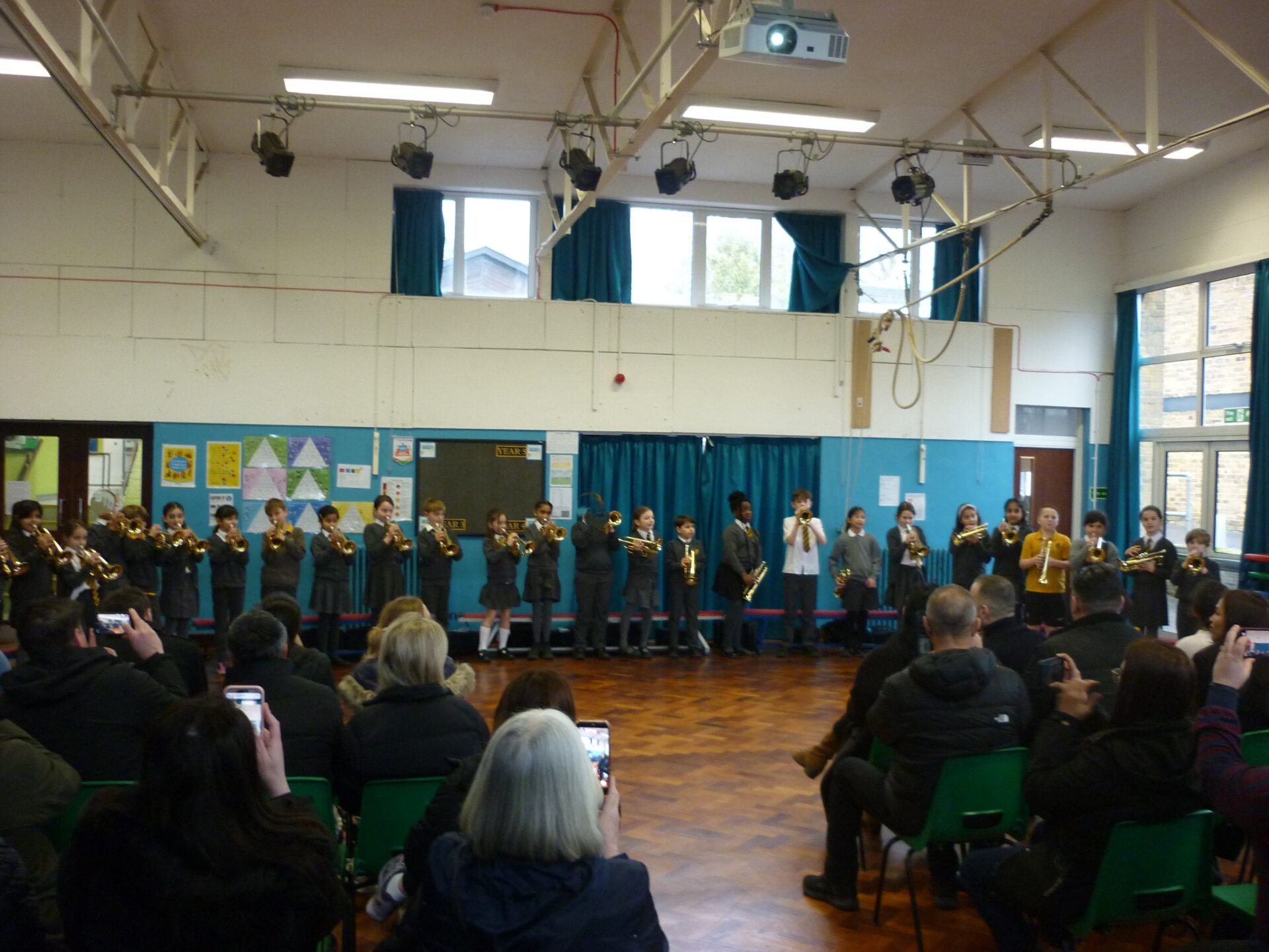 Well done to 4V who impressed parents and governors with their cornet performance. They have learnt how to play the cornet, rhythm, beat and learnt how to read basic music notation.