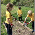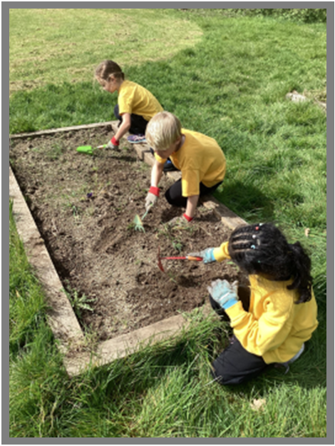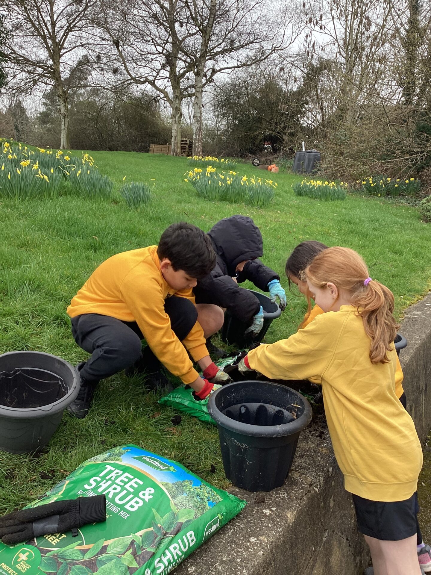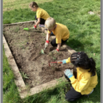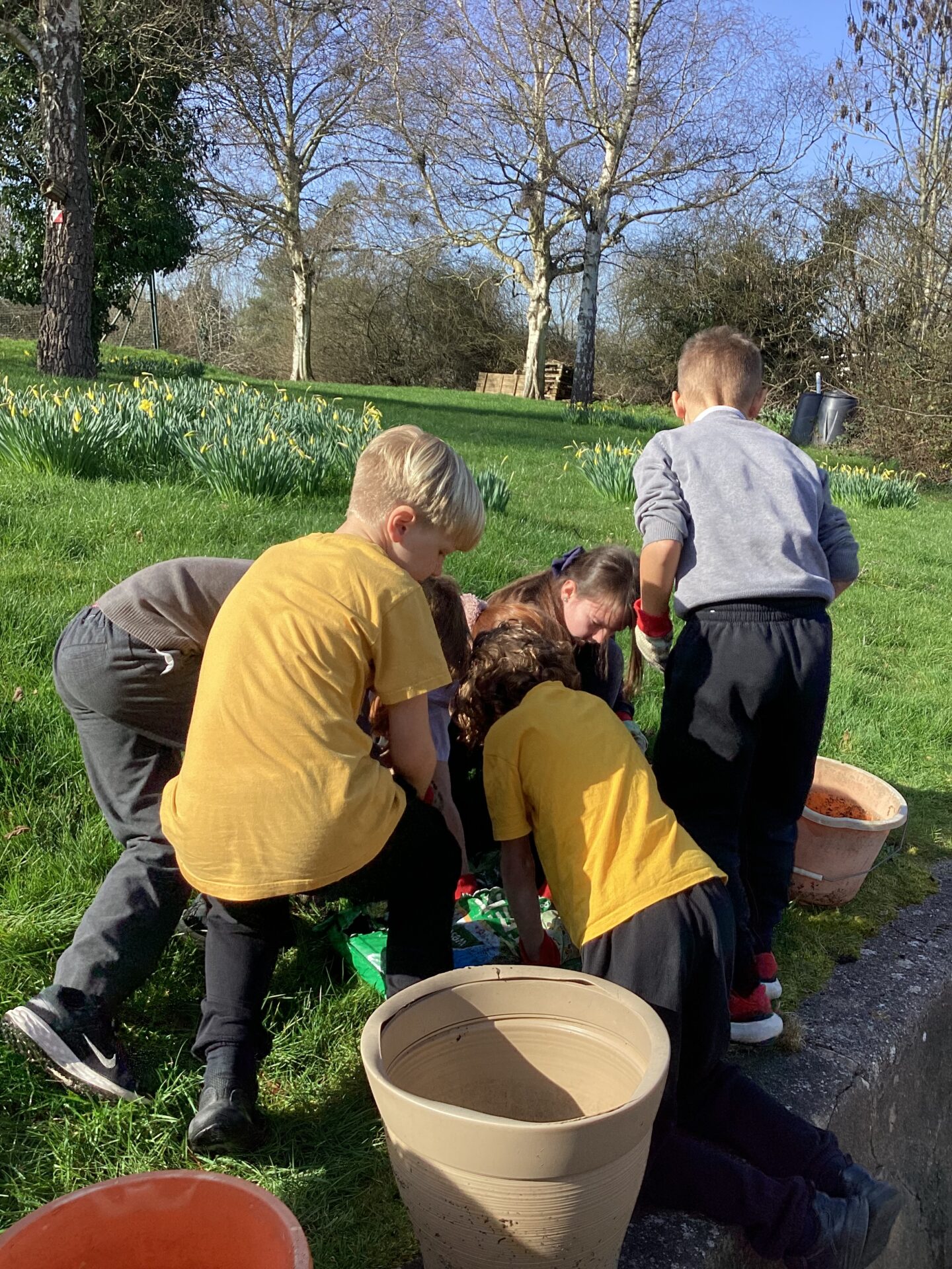 Mr Jones and the Year 3 and 4 Eco Councillors have been working hard this week at lunchtime planting