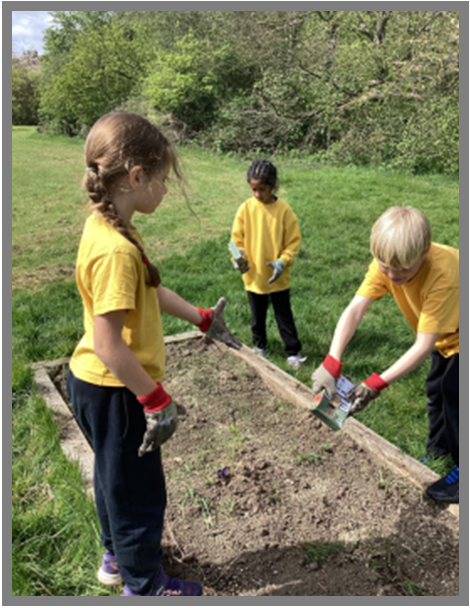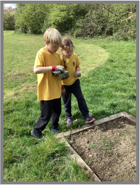 Mr Jones and the Year 3 and 4 Eco Councillors have been working hard this week at lunchtime planting Sunflowers!